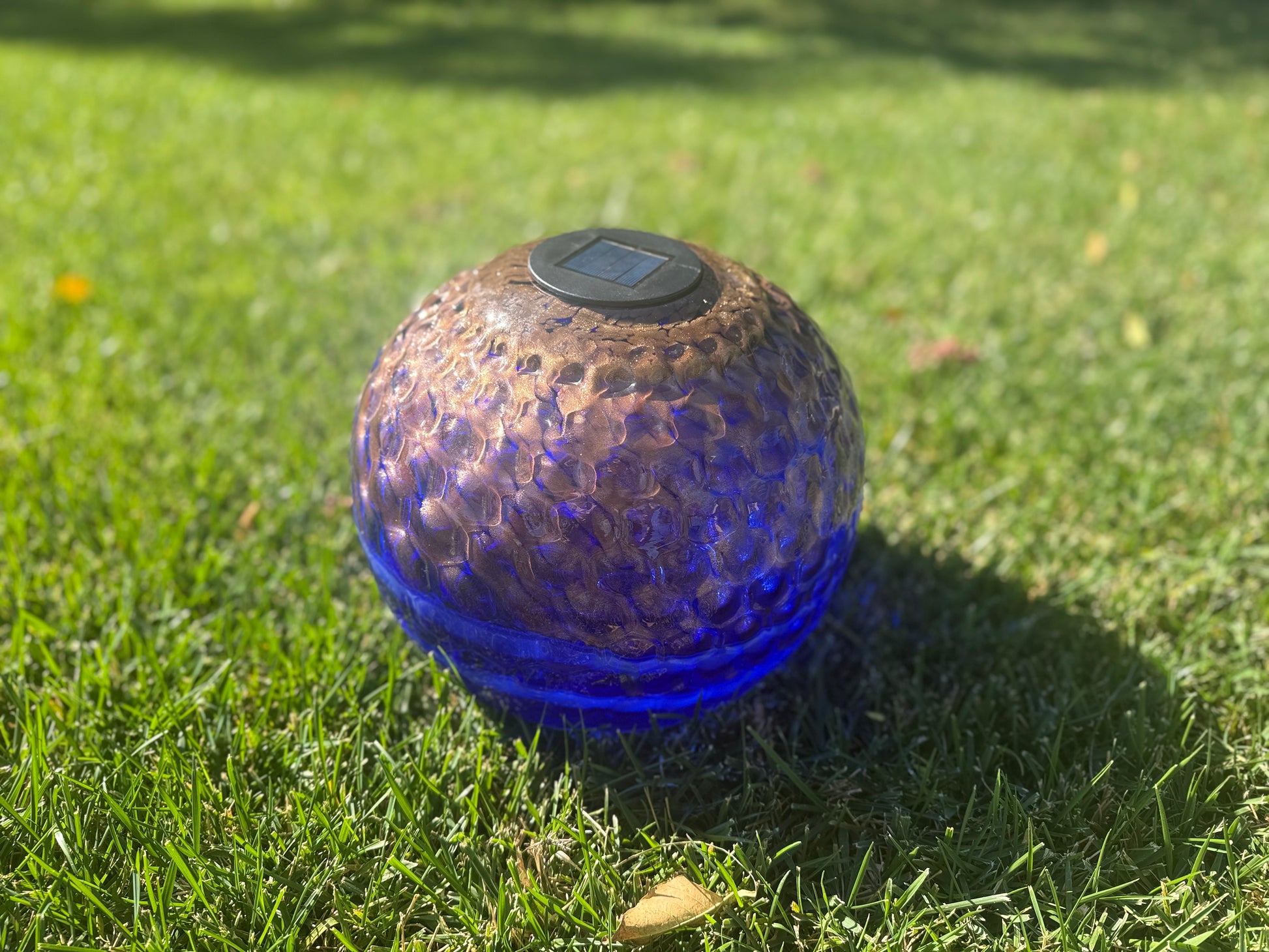 12" Hand Blown Art Glass Solar Gaze Ball Blue Gold