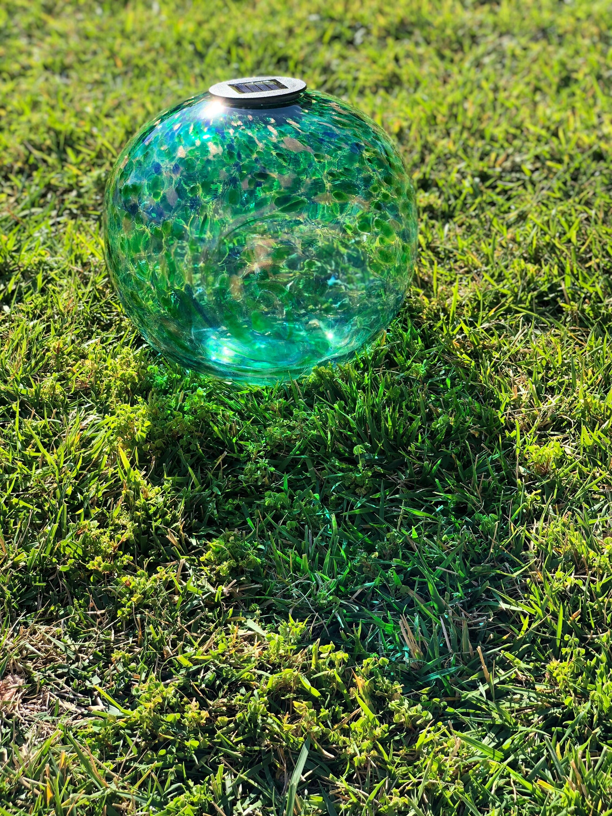 12" XLarge LED Solar Orb Gaze Ball/Garden/Pathway Light/Patio Table Light/Sun Cather/Art Glass Green