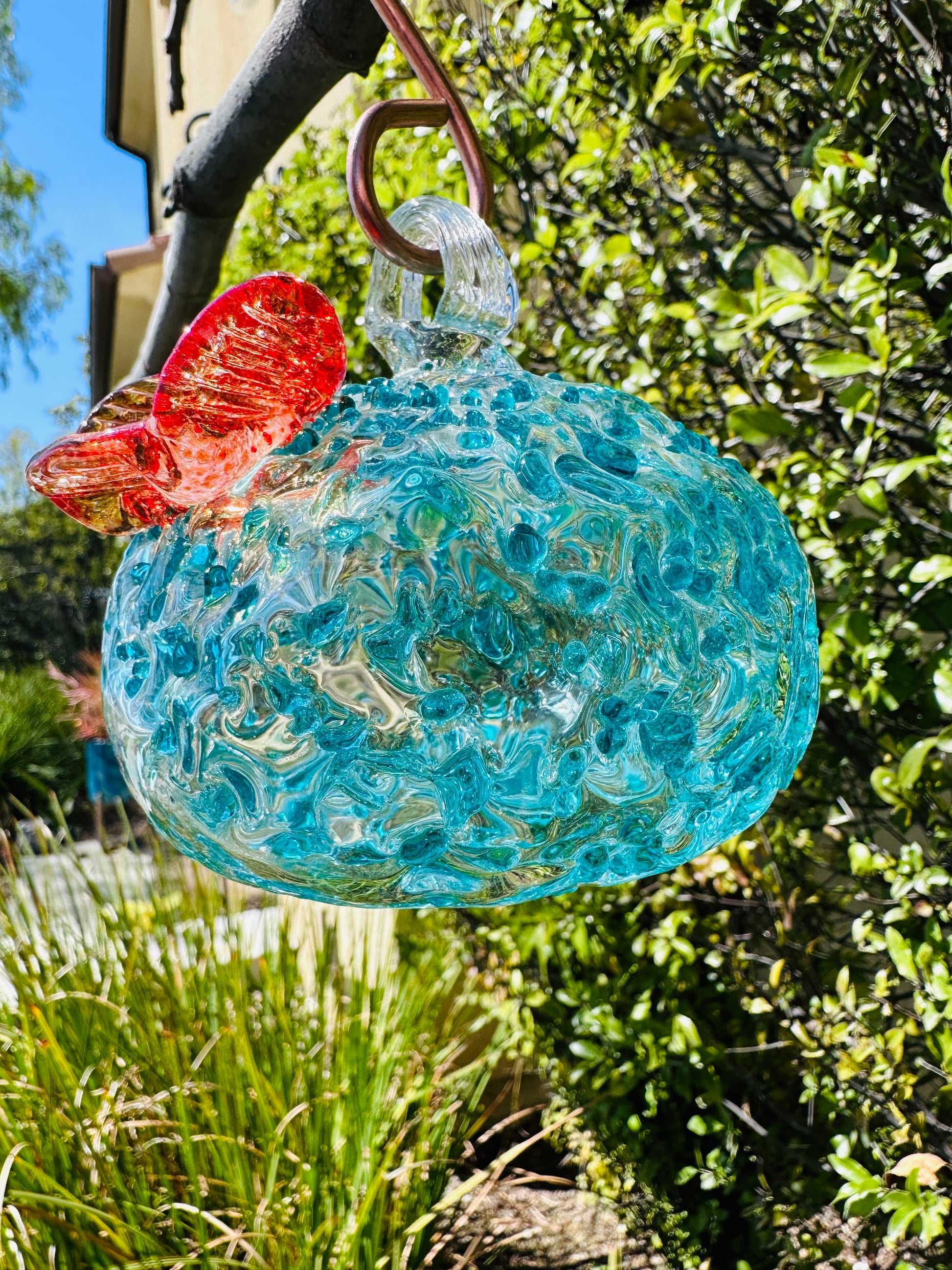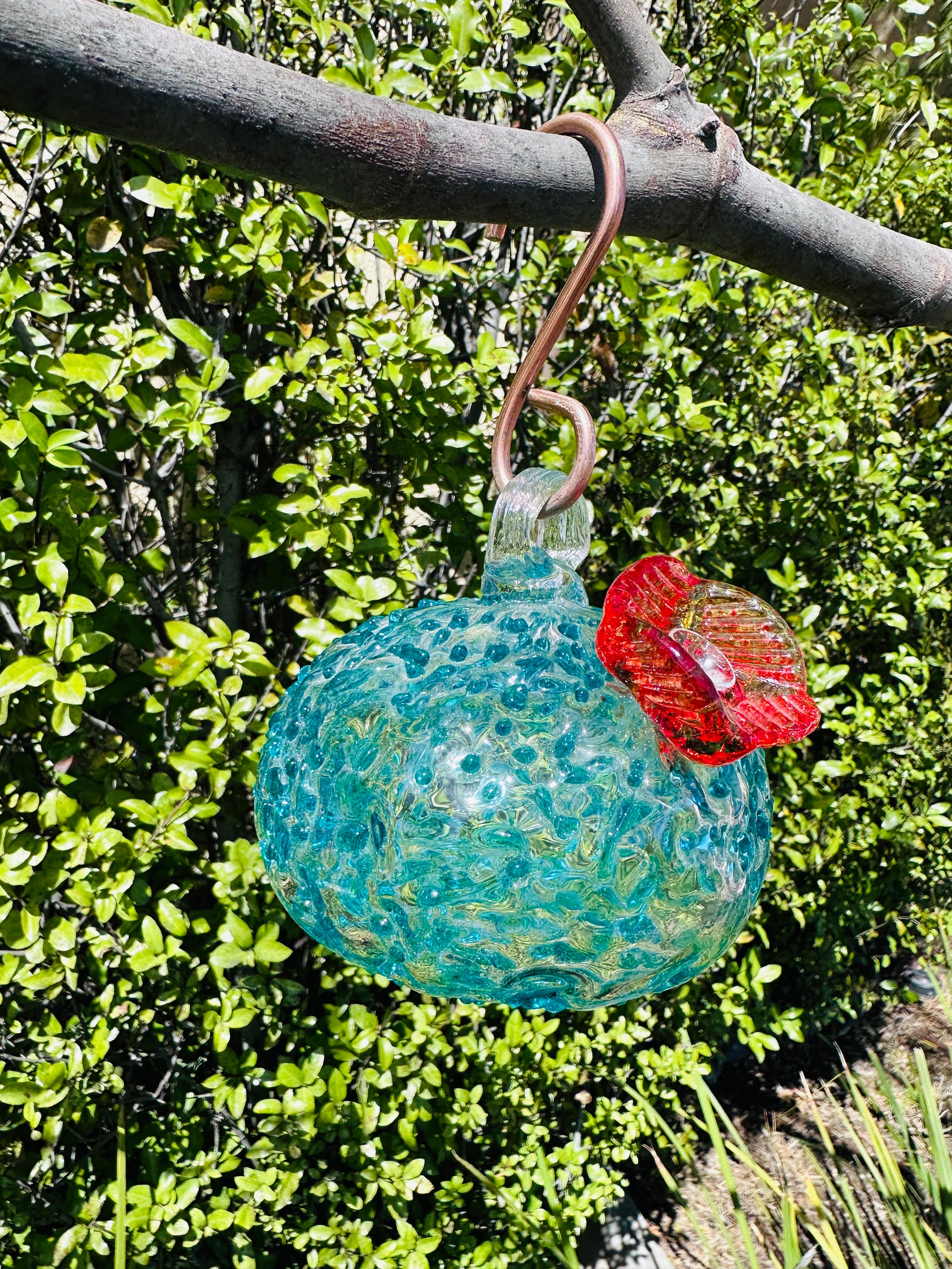100% Handblown Thick Art Glass Bird Feeder, 6 color available comes with brass hook and 1 feeding tube